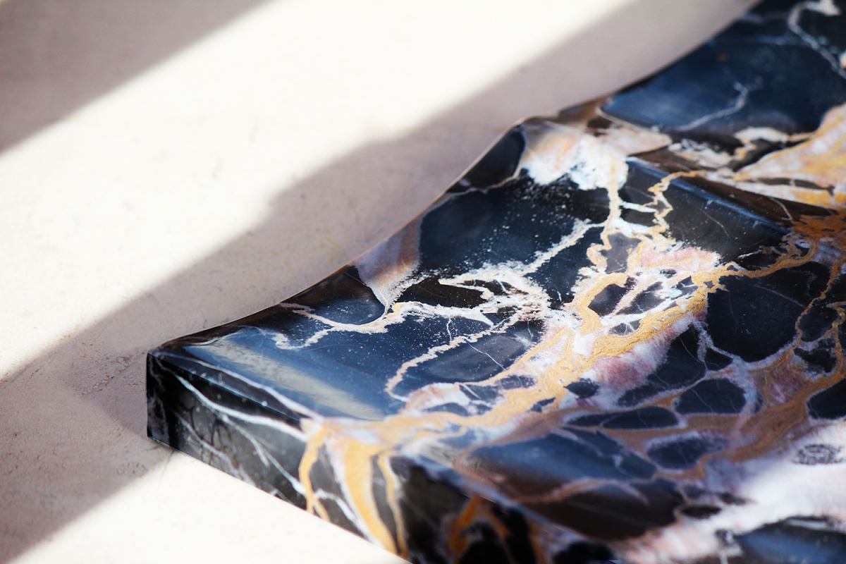 Material: Available in 2 different colors. Portoro Marble and Iran Red Travertine.